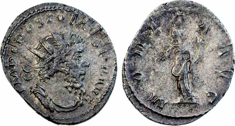 Silver antoninianus, 21mm, 3.52gm, issued AD 260-265 Cologne mint.