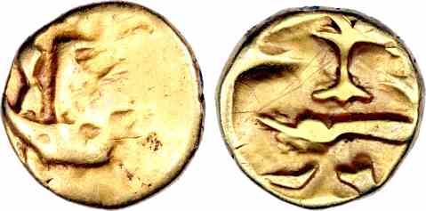 Quarter stater. The Morini were a coastal Belgic tribe settled around modern Calais. Much of their "imported coinage" has been found in neighbouring Britain.