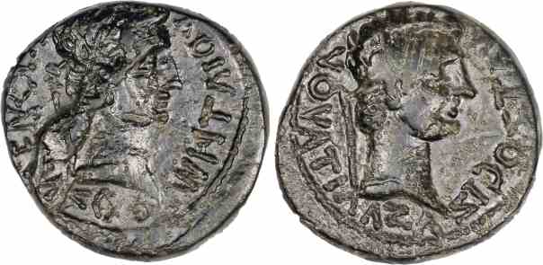 Rev: ΑΥΤΟΚΡΑΤΟΡΟΣ ΚΑΙΣΑΡΟΣ ΣΕΒΑΣΤΟΥ, Bare head of Tiberius right.