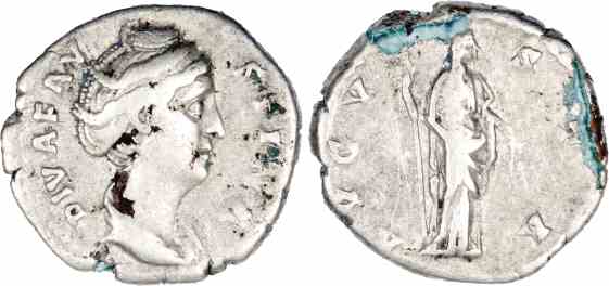 Silver denarius, 18mm, 3.05gm, issued AD 141 Rome mint.
