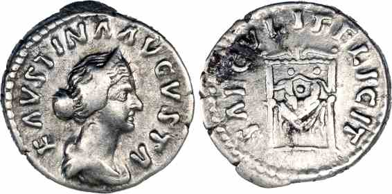 Obv: FAVSTINA AVGVSTA, Diademed draped bust right.