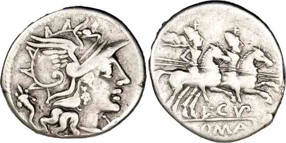 Rev: L·CVP ROMA, Dioscuri galloping right.