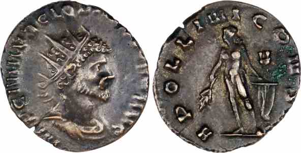 Rev: APOLLINI CONS, Apollo, standing left, holding laurel-branch and lyre set on rock.