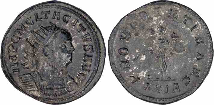 Obv: IMP C M CL TACITVS AVG, Radiate, cuirassed bust right.
