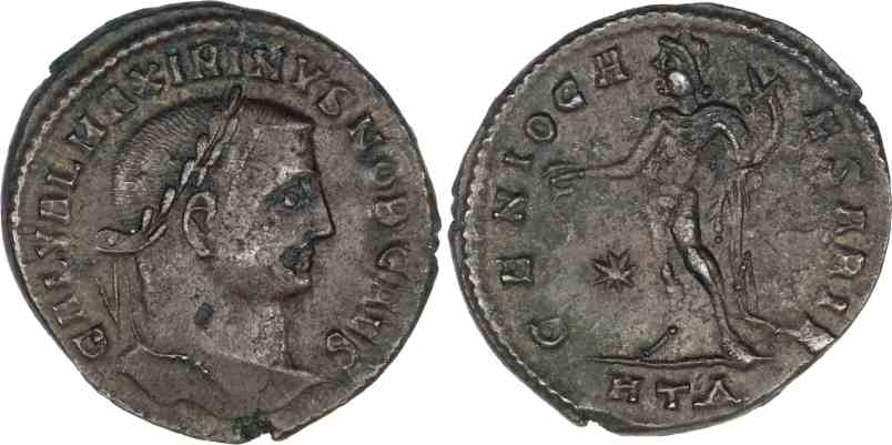Obv: GAL VAL MAXIMINVS NOB CAES, Laureate head right.