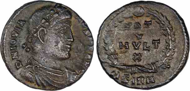 Obv: DN IOVIANVS PF AVG, Diademed, draped, cuirassed bust right.