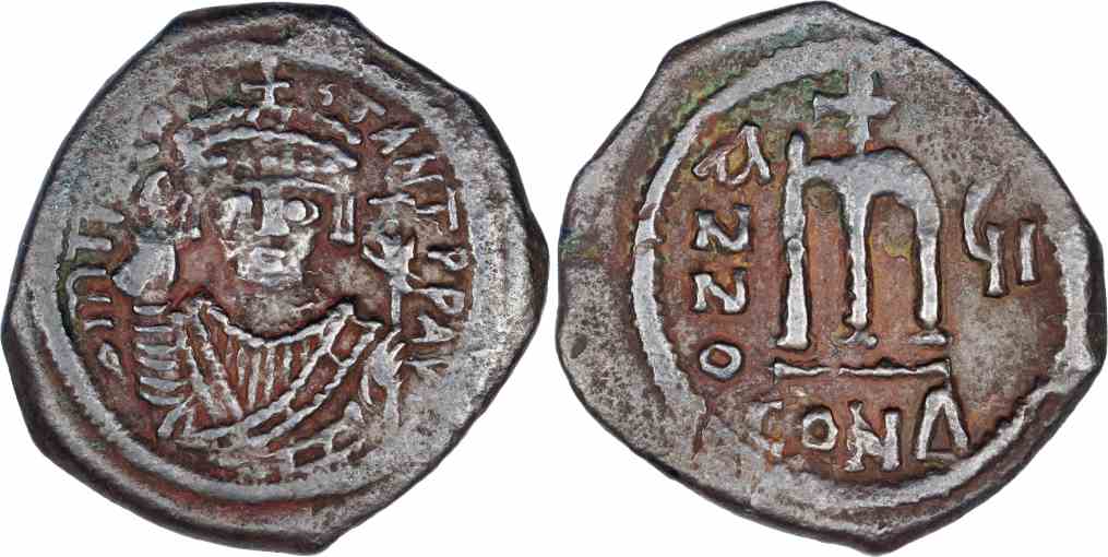 Bronze follis, 32mm, 11.21gm, issued AD 579/580 Constantinople mint.