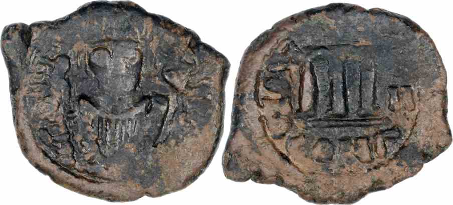 Bronze follis, 28mm, 11.48gm, issued AD 581/582 Constantinople mint.
