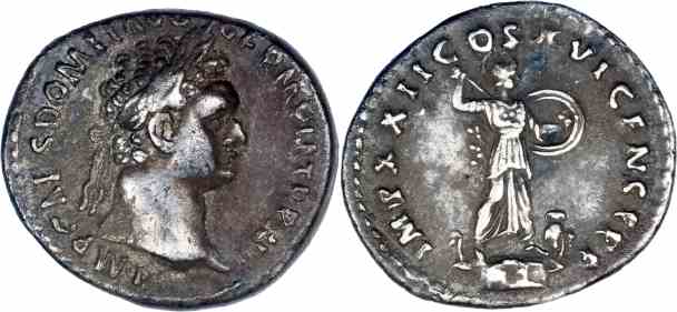 Silver denarius, 19mm, 3.07gm, issued AD 93/94 Rome mint.