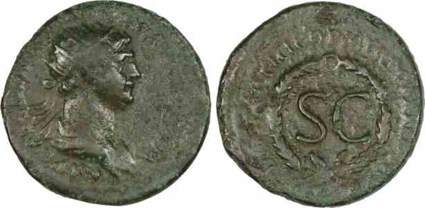 Obv: IMP CAES NER TRAIANO OPTIMO AVG GERM, Radiate head right.
