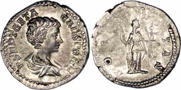Obv: P SEPT GETA CAES PONT, Bare-headed, draped, cuirassed bust right.