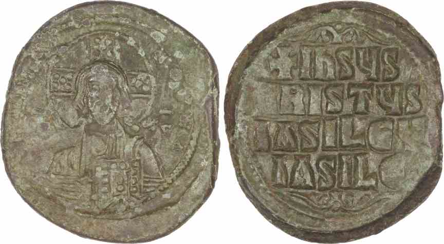 Obv: Nimbate bust of Christ facing.