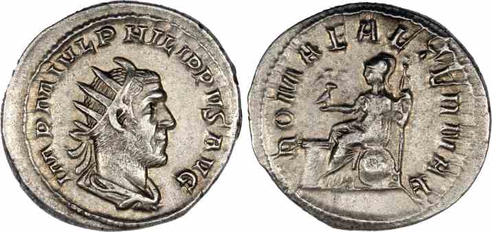 Obv: IMP M IVL PHILIPPVS AVG, Radiate, draped, cuirassed bust right.