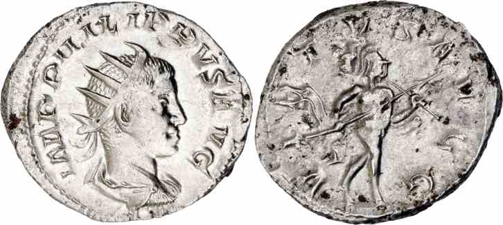 Silver antoninianus, 23mm, 3.99gm, issued AD 246-248 Rome mint.