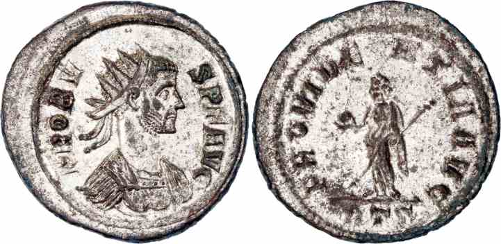 Silvered bronze antoninianus, 23mm, 4.32gm, issued AD 276-282 Rome mint.