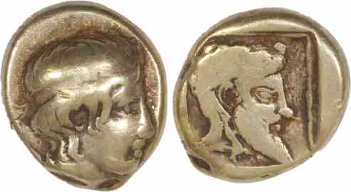 Electrum sixteenth shekel, 10mm, 2.47gm, issued 454-427 BC