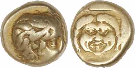 Electrum sixteenth shekel, 10mm, 2.50gm, issued 454-427 BC