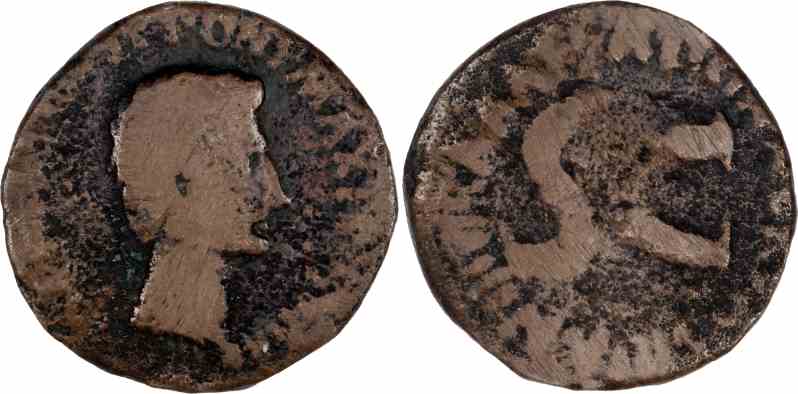 Bronze as, 26mm, 8.49gm, issued 6 BC Rome mint.