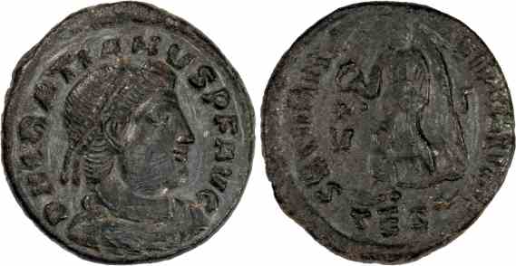 Bronze AE3, 18mm, 2.81gm, issued AD 367-375 Thessalonica mint.