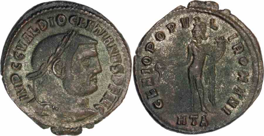 Obv: IMP C C VAL DIOCLETIANVS PF AVG, Laureate head right.