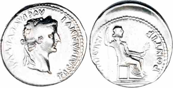 Obv: TI CAESAR DIVI AVG F AVGVSTVS, Laureate head right.