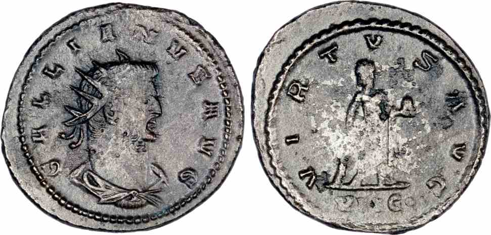 Obv: GALLIENVS AVG, Radiate, draped bust facing right.