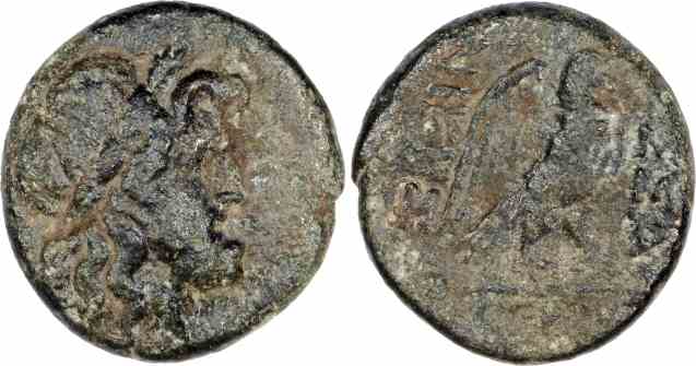 Rev: ΘEΣΣAΛONIKHΣ, Eagle with spread wings standing on thunderbolt.