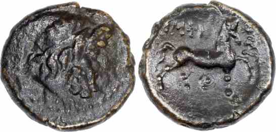 Rev: AMΦIΠ..., Horse pracing right, monogram below.