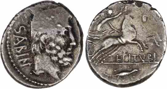 Rev: L·TITVRI, Victory in biga, right, holding reins in left hand and wreath in right hand. Lizard below.