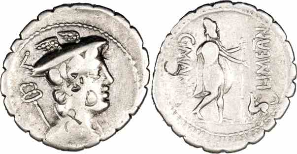 Obv: Bust of Mercury, right, draped and with caduceus over shoulder.