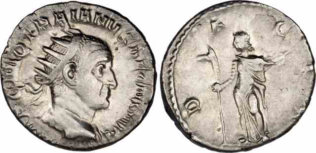 Obv: IMP C M Q TRAIANVS DECIVS AVG, Radiate, draped, cuirassed bust right.