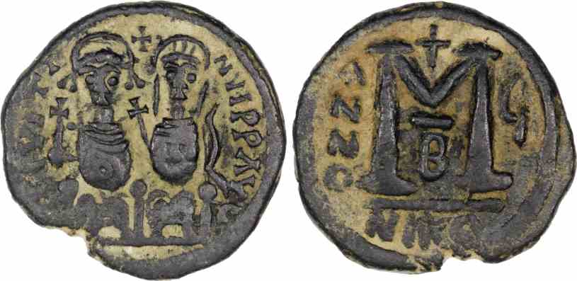Bronze follis, 26mm, 8.58gm, issued AD 570/571 Nicomedia mint.