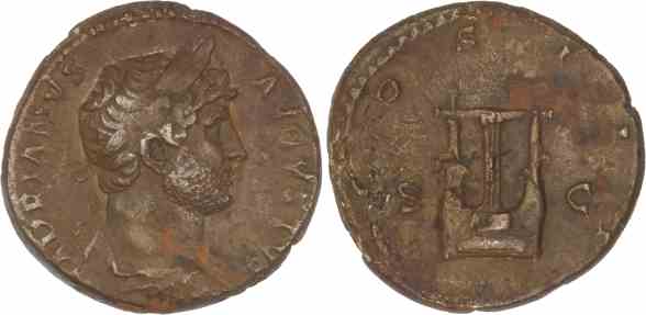Obv: HADRIANVS AVGVSTVS, Laureate, draped, cuirassed bust right.