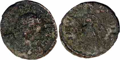 Bronze AE4, 14mm, 1.10gm, issued AD 388-392 Constantinople mint.