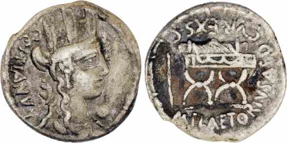 Rev: M·PLAETORIVS·AED·CVR·EX·S·C, Curule chair.