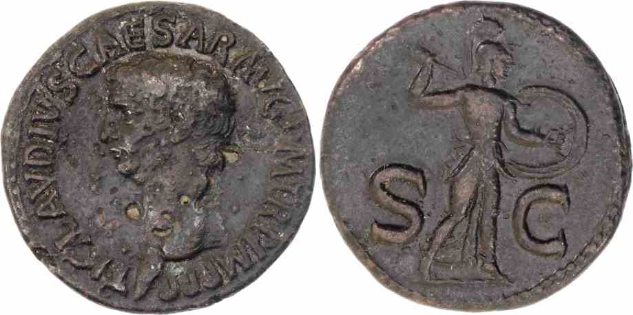 Rev: S C, Minerva, helmeted and draped, advancing right, levelling javelin in right hand and shield in left.