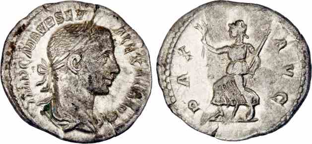 Rev: PAX AVG, Pax running left, holding olive-branch and sceptre.