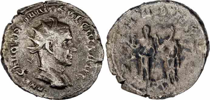 Obv: IMP C M Q TRAIANVS DECIVS AVG, Radiate, draped, cuirassed bust right.