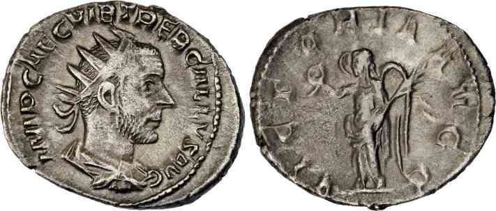 Silver antoninianus, 22mm, 3.32gm, issued AD 251-253 Rome mint.